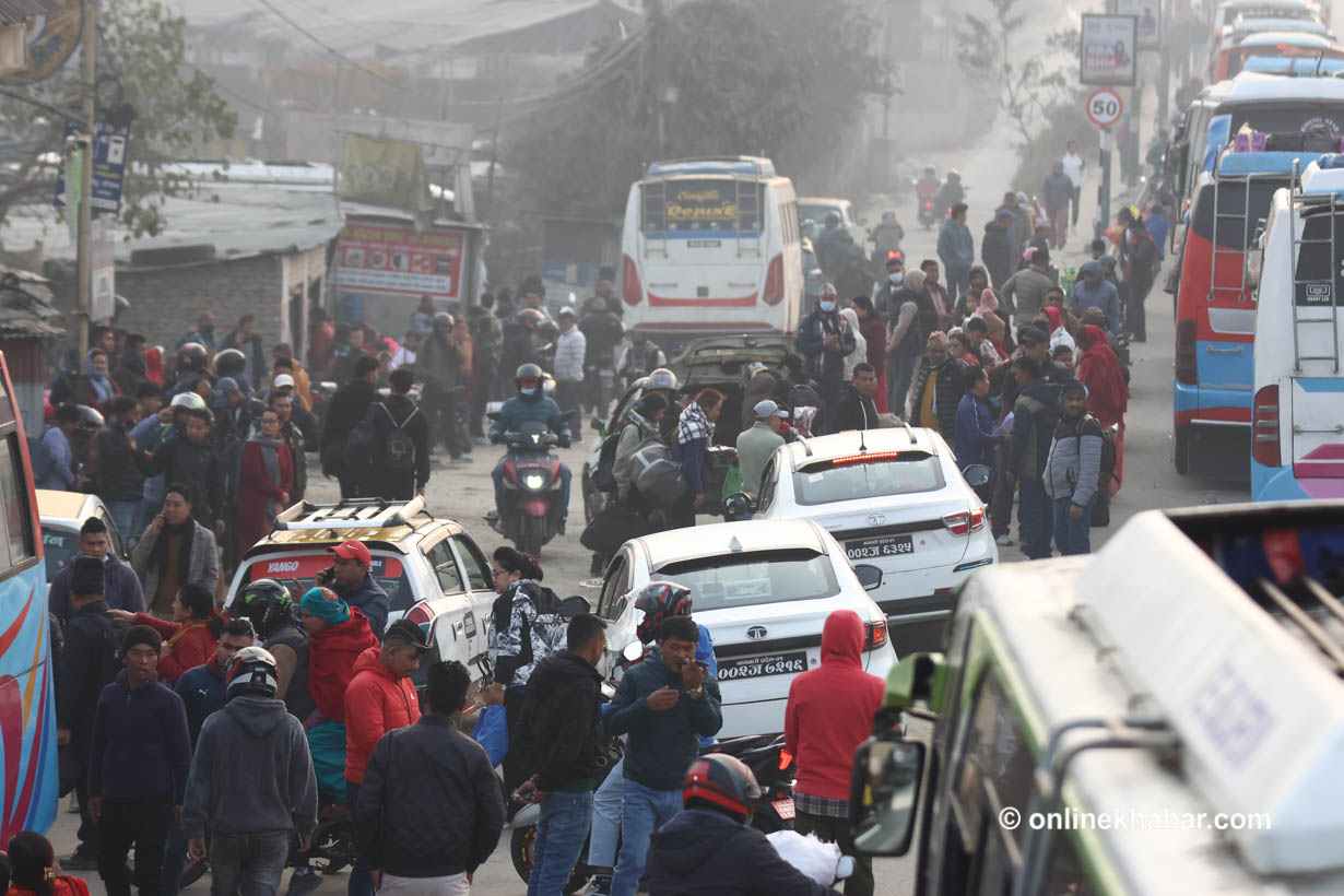 As the day of the House of Representatives election draws near, the number of people returning to their villages from the Kathmandu Valley has increased. Crowds leaving the Valley can be seen at its major exit points.