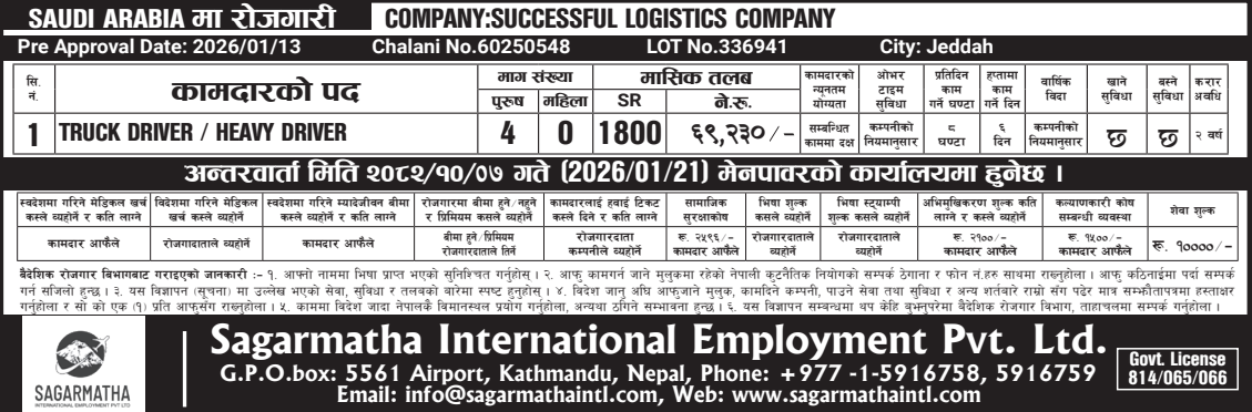 The post Various Jobs In Saudi Arabia appeared first on राजधानी राष्ट्रिय दैनिक (लोकप्रिय राष्ट्रिय दैनिक)-RajdhaniDaily.com - Online Nepali News Portal-Latest Nepali Online News portal of Nepali Polities, economics, news, top stories, national, international, politics, sports, business, finance, entertainment, photo-gallery, audio, video and more....