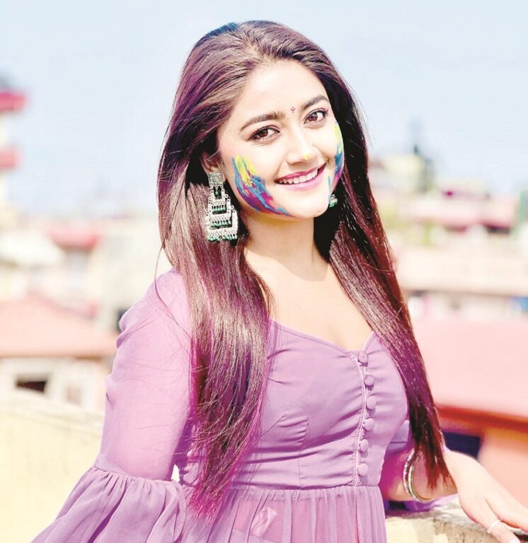 १०. अभिनेत्री वर्षा राउत रंग दलेर फाटो खिची रमाउउँदै ।