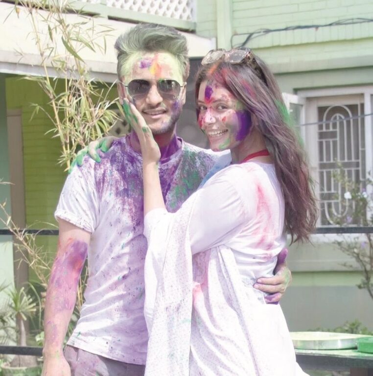 नायक पल शाह हेयर डिजाइनर तथा आफ्ना सहयोगी जुरी ठाकुरका साथ फागुमा रमाउउँदै ।