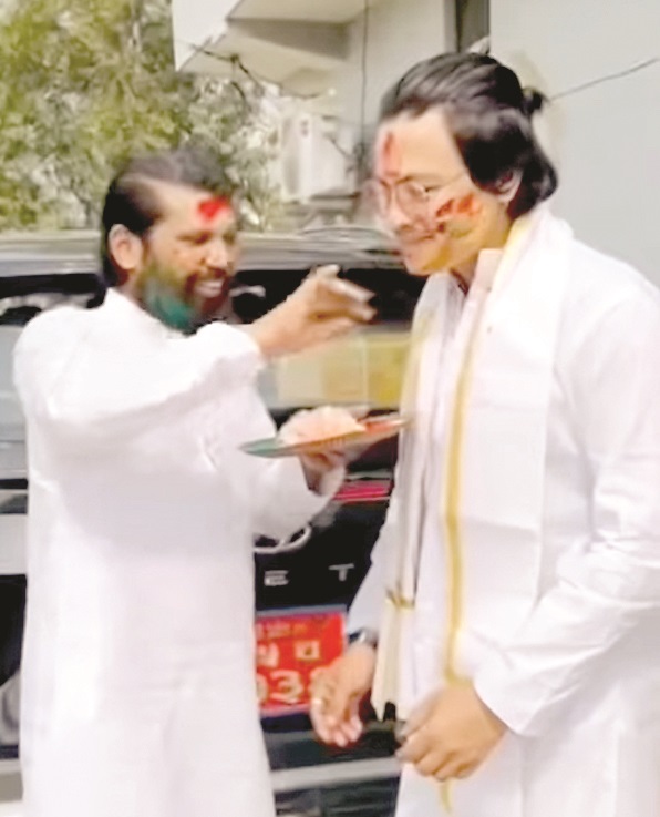 चितवनमा रास्वपा अध्यक्ष रवि लामिछाने दम्पतीका साथ फागु खेल्दै अभिनेता विपिन कार्की।