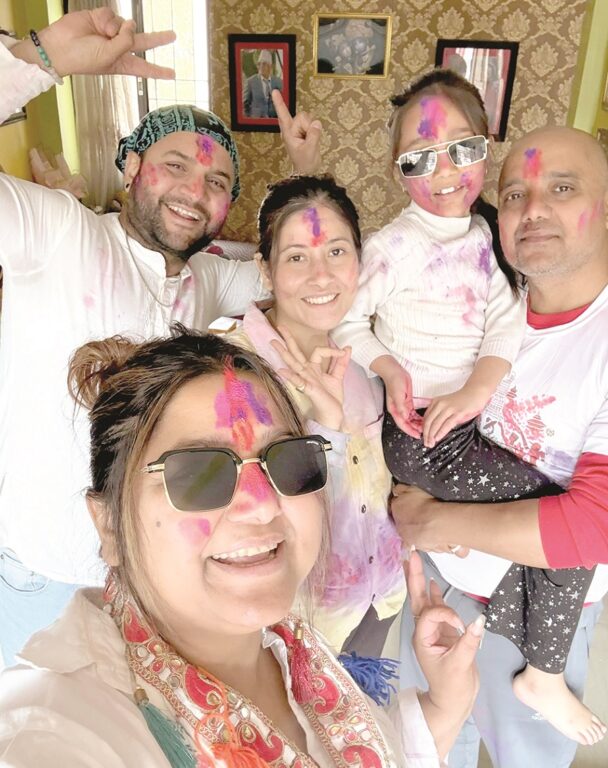 अभिनेत्री रेखा थापा परिवारका साथ फागु मनाएर रमाउउँदै ।