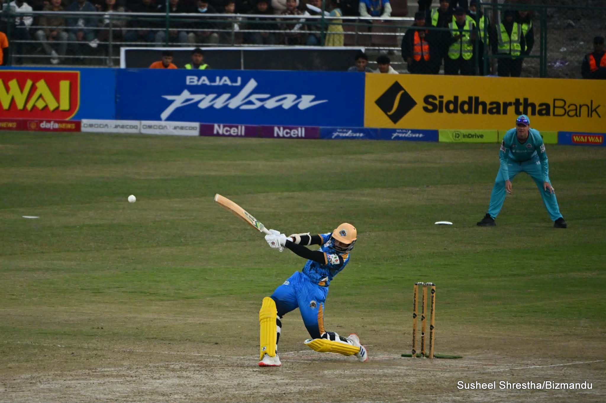 त्यस्तै नजिबुल्ला जार्दनले १२, कप्तान सोमपाल कामीले ६ तथा दीपक डुम्रेले १० रन बनाउँदा कर्णालीका लागि सबैभन्दा ठूलो योगदान गुल्सन झाले गरे। झाले २२ बलमा ६ चौका र ३ छक्का प्रहार गर्दै अविजित ४९ रन बनाए।