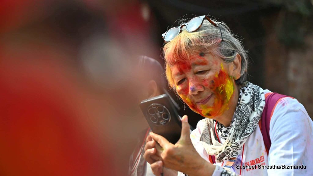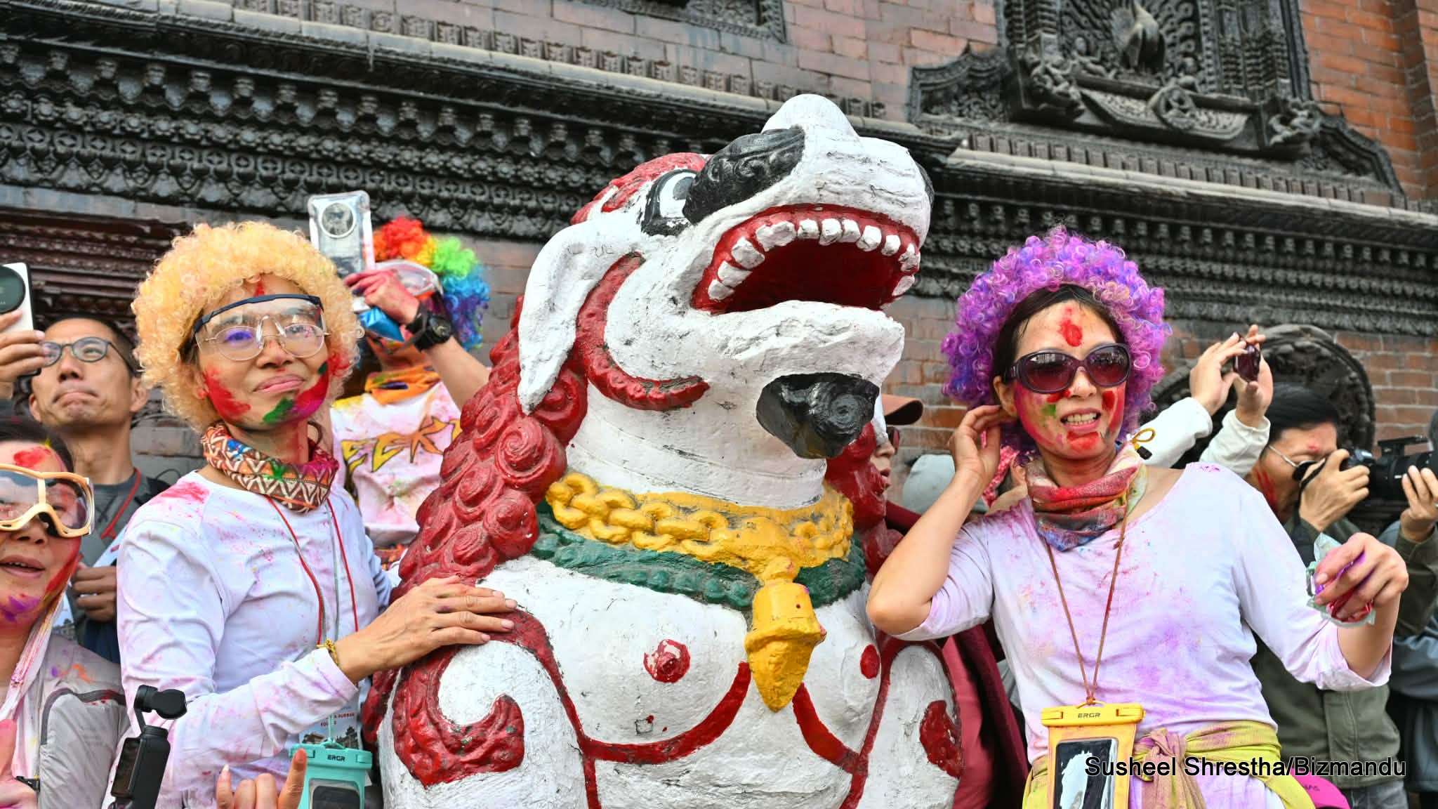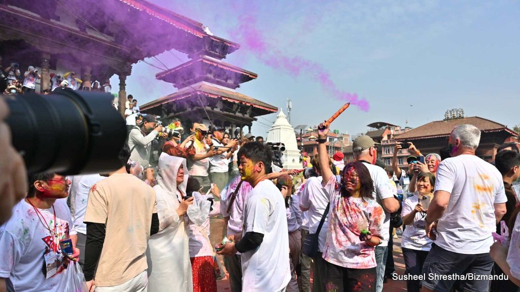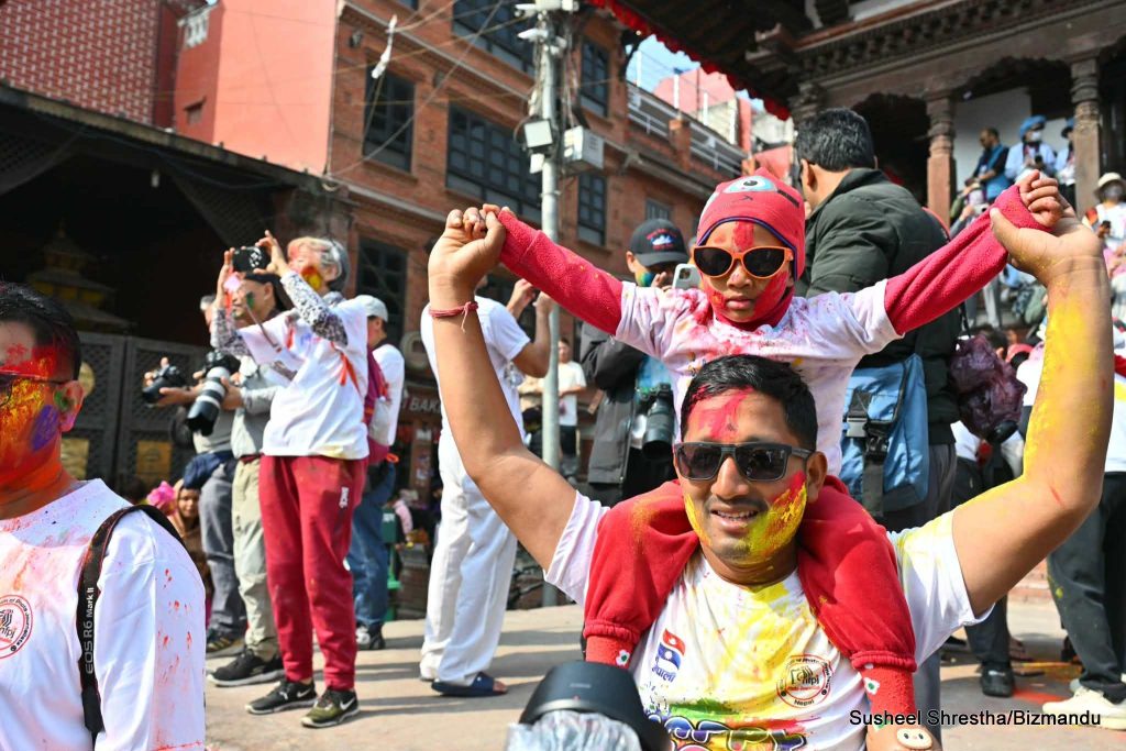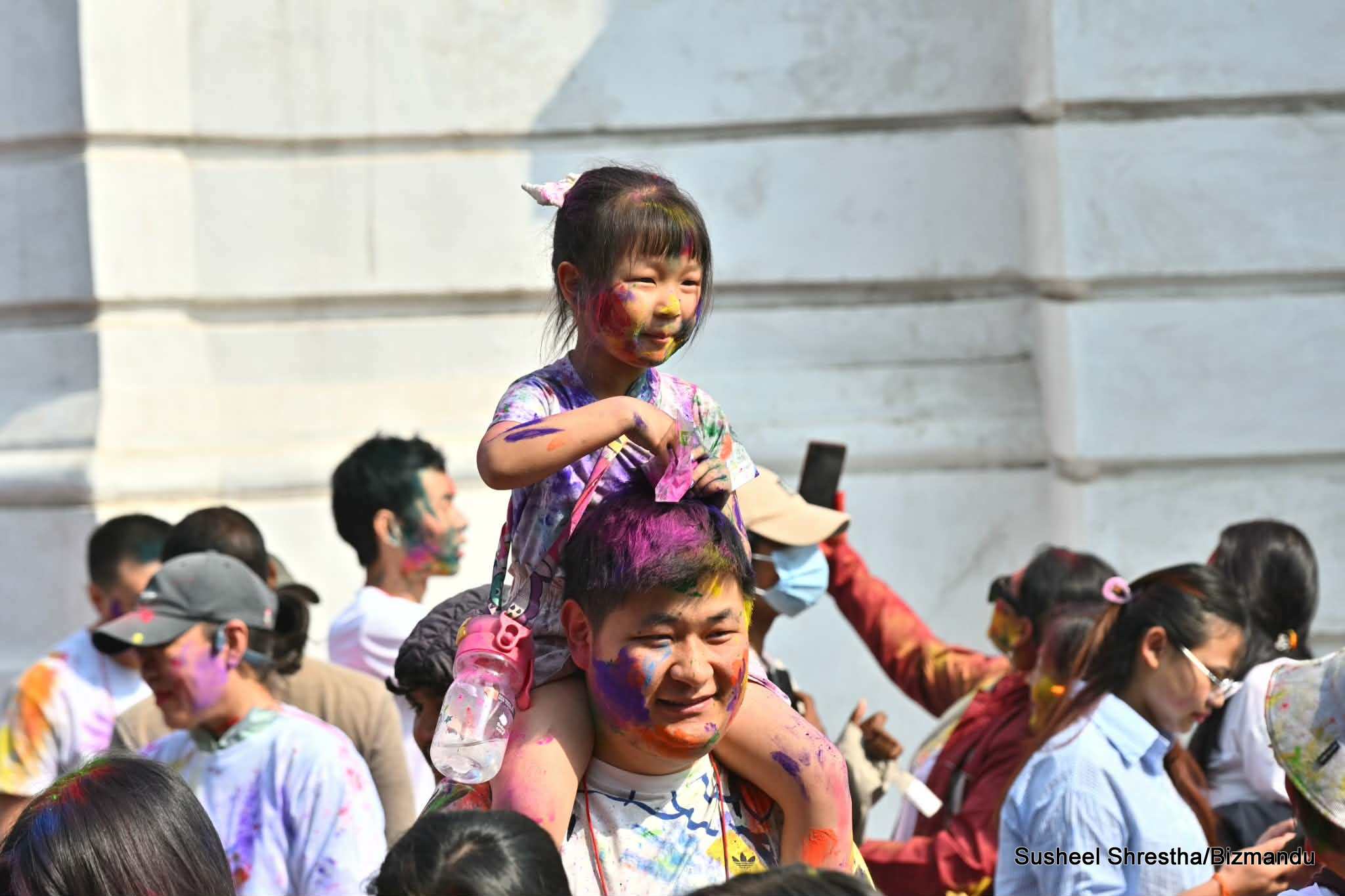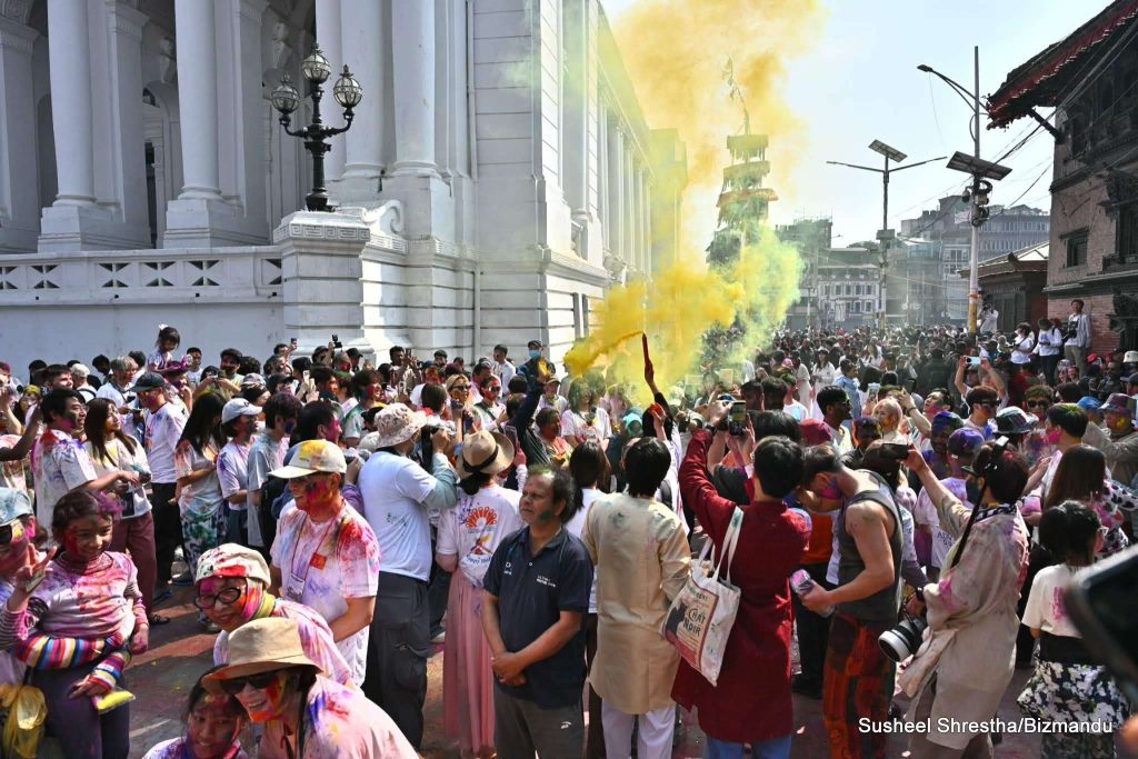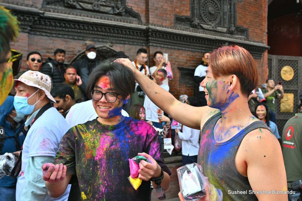 The post होली रे…. वसन्तपुरमा एकअर्कालाई रंग दलेर युवायुवतीसँगै विदेशी पर्यटकले पनि मनाए होली appeared first on BIZMANDU.