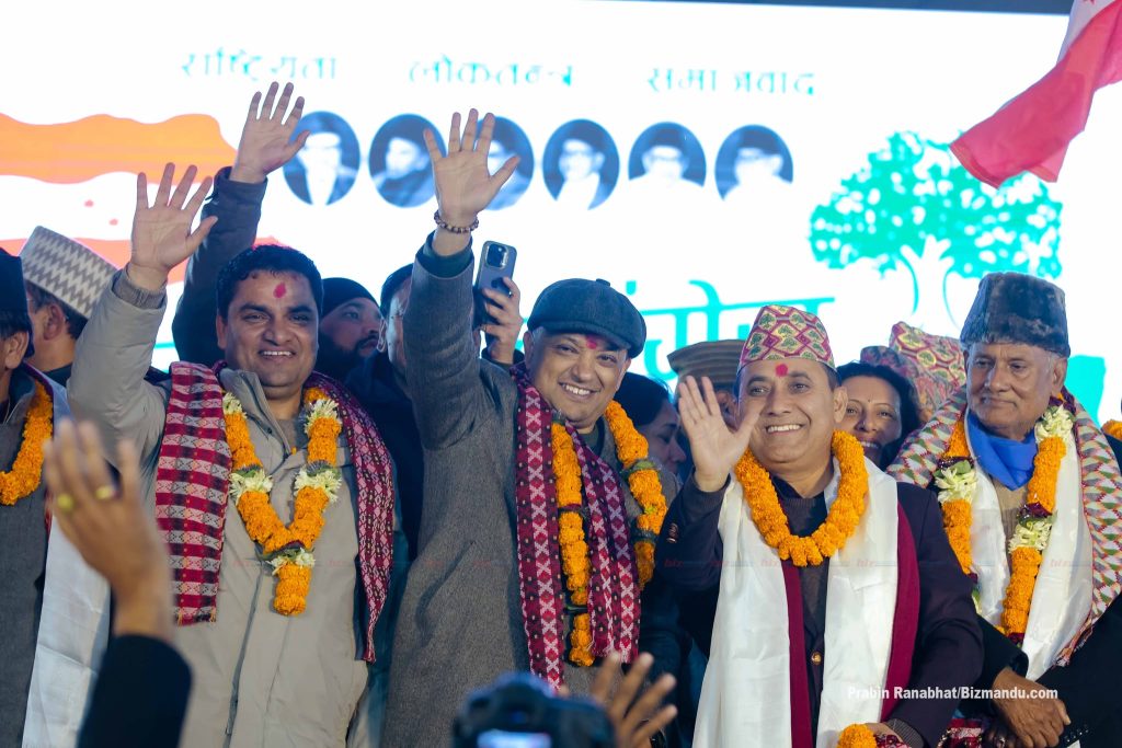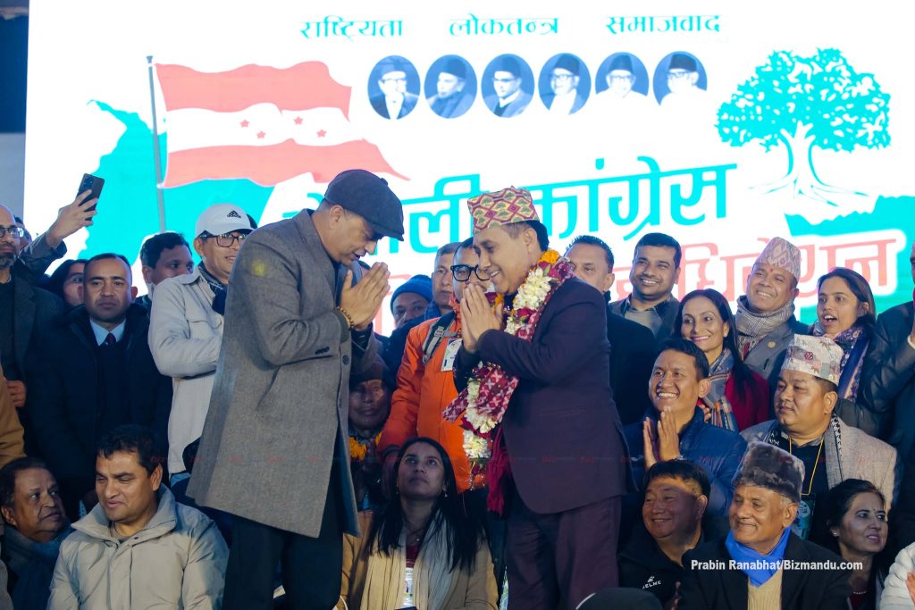 The post विद्रोहपछि कांग्रेसमा गगन र विश्वको उदय, भृकुटीमण्डपमा विजय उत्सव (तस्विरहरु) appeared first on BIZMANDU.
