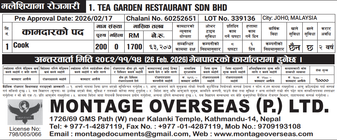The post Various Jobs In Malaysia appeared first on राजधानी राष्ट्रिय दैनिक (लोकप्रिय राष्ट्रिय दैनिक)-RajdhaniDaily.com - Online Nepali News Portal-Latest Nepali Online News portal of Nepali Polities, economics, news, top stories, national, international, politics, sports, business, finance, entertainment, photo-gallery, audio, video and more....